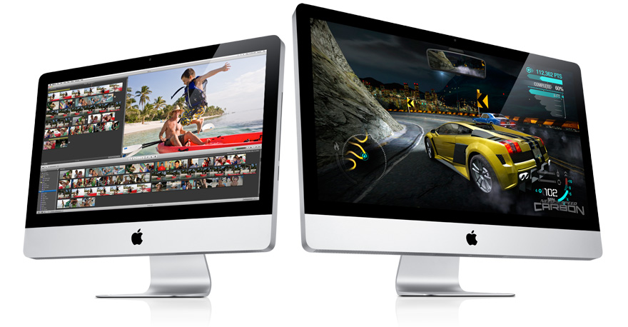 Gli iMac da 21,5″ e 27″ hanno veloci processori Intel Core 2 Duo fino a 3,33GHz. Il modello da 27″ è anche disponibile in versione quad-core con un potente chip Intel Core i5 a 2,66GHz o Intel Core i7 a 2,8GHz. Quattro core significano prestazioni fino a 2 volte più brillanti da sfruttare in tutto quel che fai, come gestire foto, montare video HD e perfino divertirti con giochi 3D a grafica intensa.1 E poiché Mac OS X Snow Leopard è progettato per usare al meglio le architetture Intel dual-core e quad-core, avrai performance alla massima velocità.